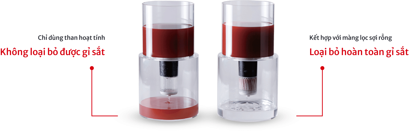 Việc tích hợp 4 cấp lọc trong một bộ lọc phù hợp với chất lượng nước máy tại Việt Nam. Trong đó, lớp Màng lọc sợi rỗng có khả năng loại bỏ tạp chất, vi khuẩn siêu nhỏ mà phương pháp lọc nước với than hoạt tính thông thường không lọc được.