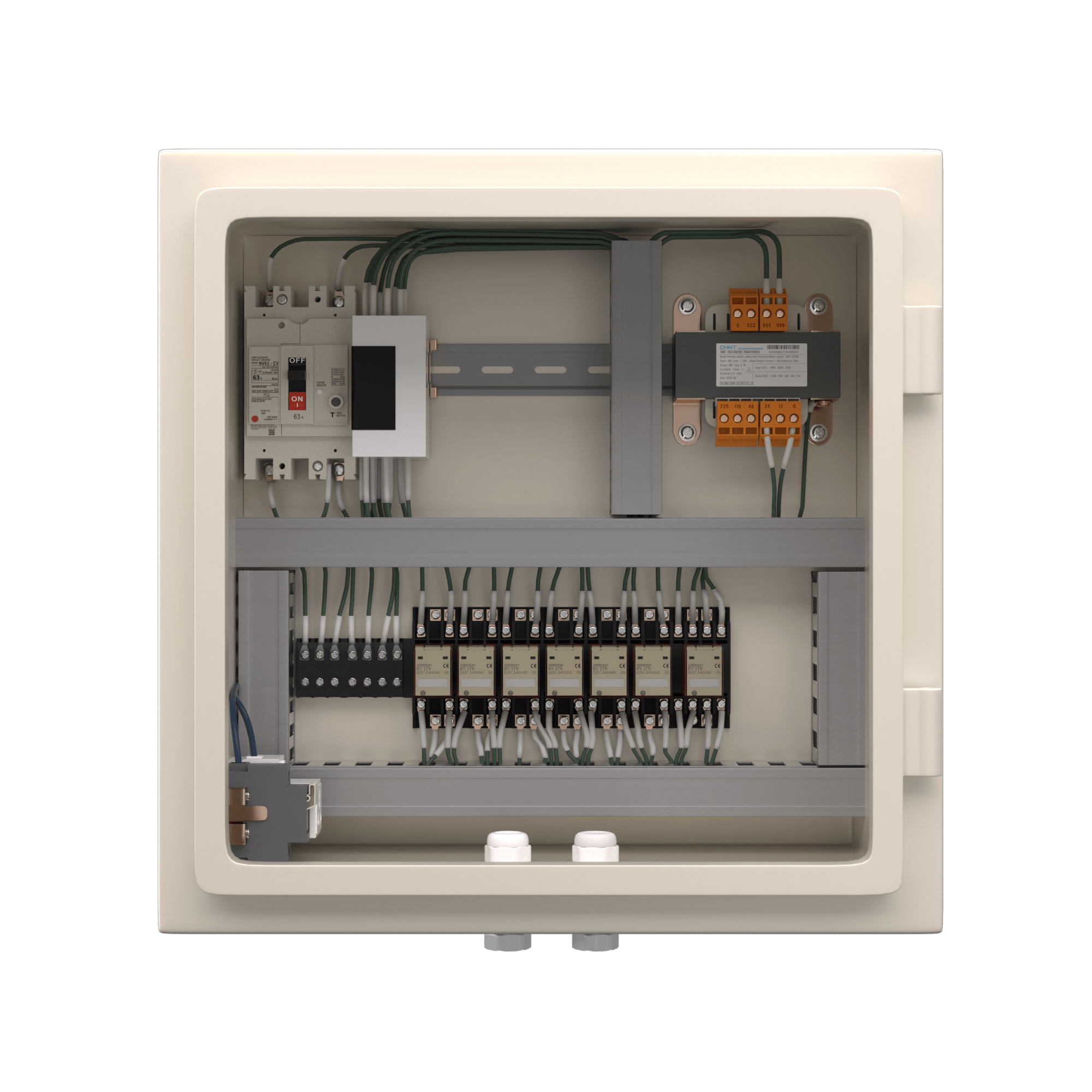 - Tủ lọc (Tủ điện/Thùng lọc): Là phần chứa bộ lọc, đường ống và các van. Chất liệu của tủ lọc thường là inox 304, riêng sản phẩm MPOE-S4 có vỏ tủ lọc bằng inox 304 mạ PVD và phủ keo trong.