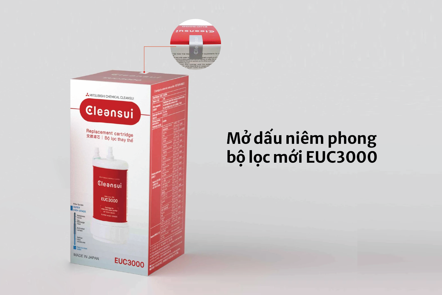 – Rạch thùng & mở dấu niêm phong bộ lọc mới trước mặt khách hàng để đảm bảo bộ lọc mới, nguyên vẹn và chính hãng Mitsubishi Cleansui.