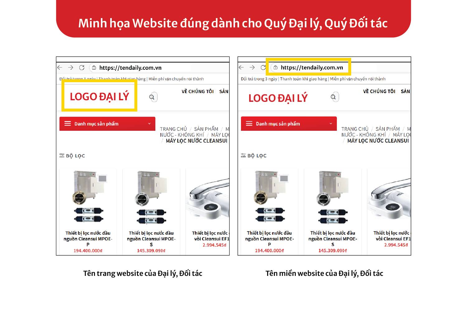 1. Website đúng dành cho Quý Đại lý, Quý Đối tác và cửa hàng trực thuộc
